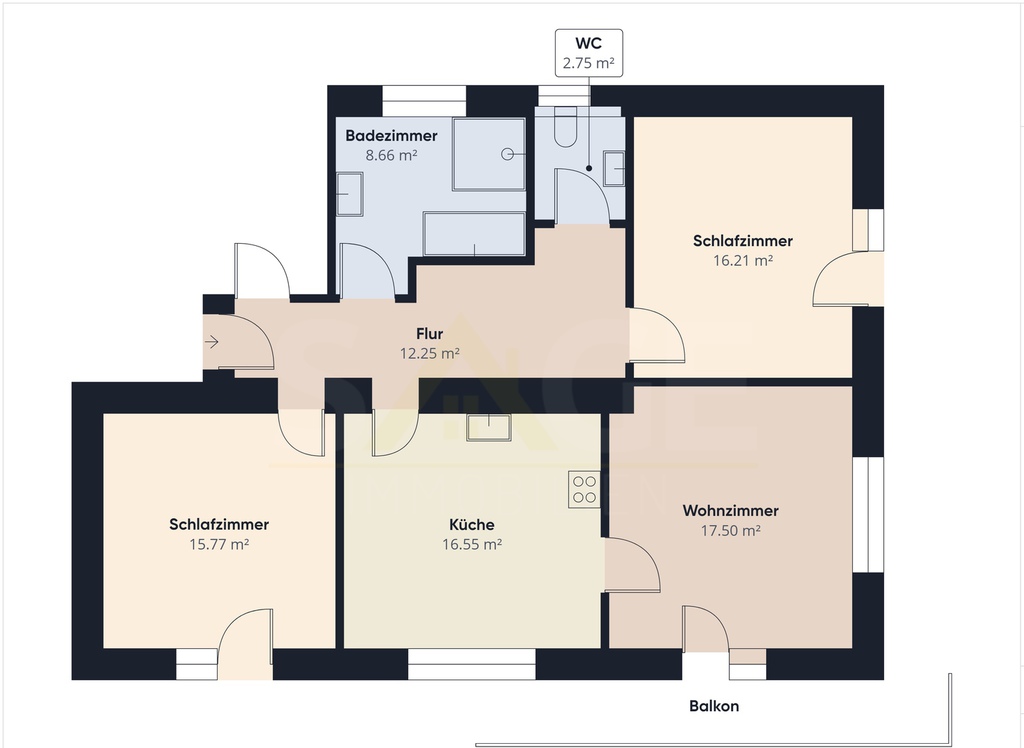 Das komfortable 93m2 Appartement verfügt über zwei Schlafzimmer.