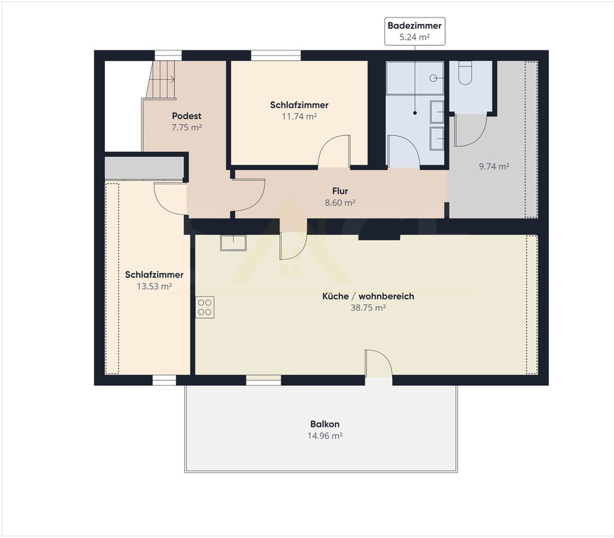 Das komfortable 98m2 Appartement verfügt über ein oder zwei Schlafzimmer.